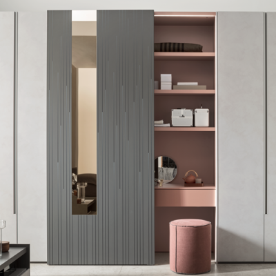 Un aspetto distintivo di Secret è la sua capacità di ottimizzare lo spazio. Che tu abbia una camera da letto ampia o un ambiente più contenuto, questo sistema offre soluzioni su misura che massimizzano la funzionalità senza compromettere l’estetica. La gamma di accessori, come specchi e illuminazione integrata, permette di arricchire ulteriormente l’armadio, rendendolo un elemento centrale e pratico della tua camera.