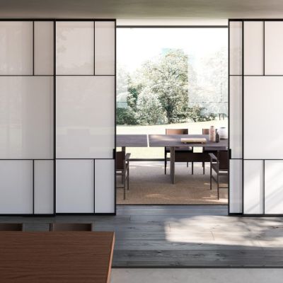 Le tipologie di apertura disponibili – scorrevoli, scorrevoli a trascinamento, scorrevoli interno muro, a battente, a bilico e a libro – permettono di trovare la soluzione ideale per ogni contesto, anche negli spazi più complessi.